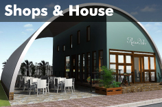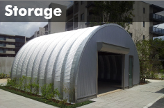 外部からの衝撃を曲線状の構造で逃がす働きをする。最もアメリカンガレージのイメージを持つ魅力的な外観のドームシェルターモデル。