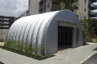半円状で機能美にも優れたModel-Q。この形状の発祥は1941年と歴史が古く、当時は軍事用の大型機械の格納や簡易的な避難所として設計し、現在でも航空機の格納庫やアメリカの中でも厳しい気象条件の土地などで活躍しております。アーチシェルフラグメントの強度が最も強いドームシェルターモデル。